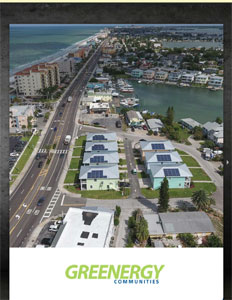 Several other Greenergy projects are in different phases of development. “Dunedin is the next one that will be completed – 25 town homes will be done later this year; Waterset is just starting – we are in the process of building the model home and the first couple of spec homes; EcoVillage-Bakersfield, California – we are finalizing the site development; EcoVillage River Place – we are in the process of building the first building; Mezzaluna Springs – all the entitlements are done and the next step is to start the site development. So they all are in different stages and all is based on utilizing the exact same product across the board, meaning a net-zero electric, or net-zero energy home, depending on the project in question.”
